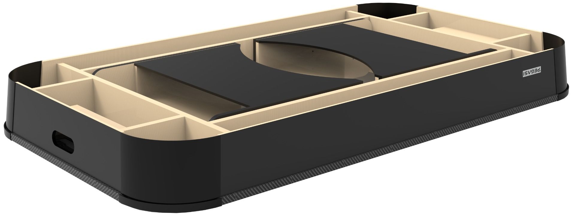 - Unterkonstruktion: verstärkte MDF-Bauweise mit 4-fach-Wabenverstrebung, klappbar, höhenverstellbaren Füßen und rutschfesten Gummitellern