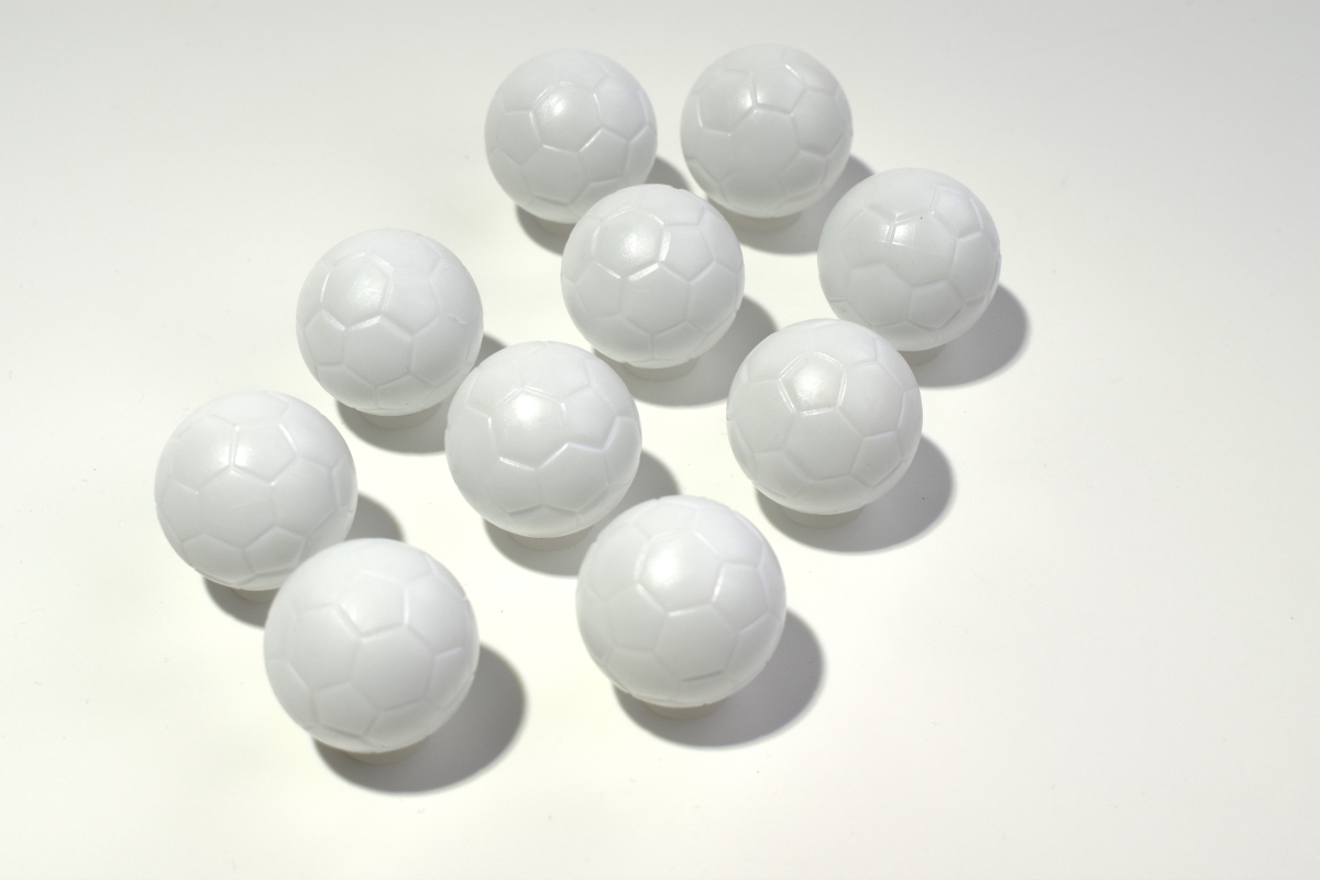 Dadurch ist der Kickerball farbecht, abriebfest und besonders langlebig. Die Verwendung von hochschlagfestem Polystyrol verleiht dem Ball zusätzlich eine außergewöhnliche Robustheit sowie Temperatur- und Witterungsbeständigkeit.
